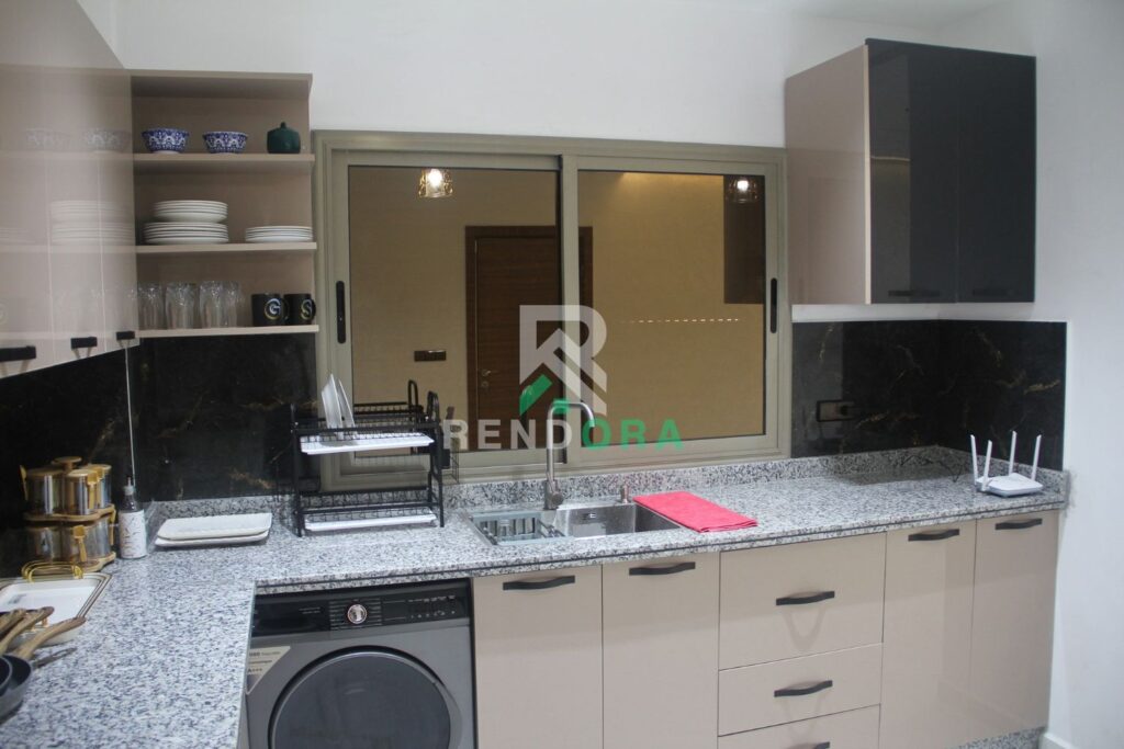 Le logement est entièrement équipé avec mobilier neuf et design européen, alliant confort, élégance et fonctionnalité.