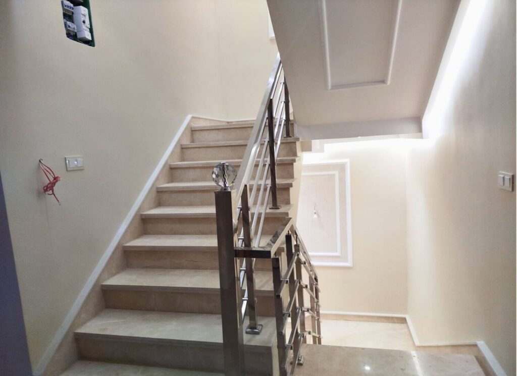 • Sols : Carrelage moderne dans les salons et marbre dans l’escalier