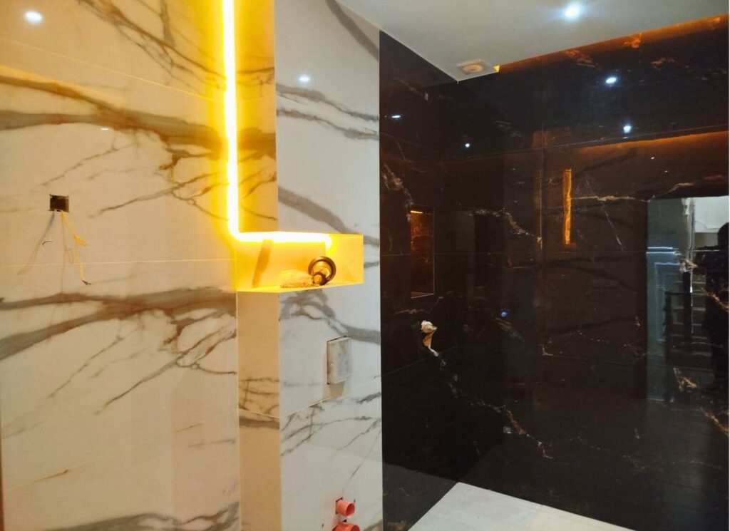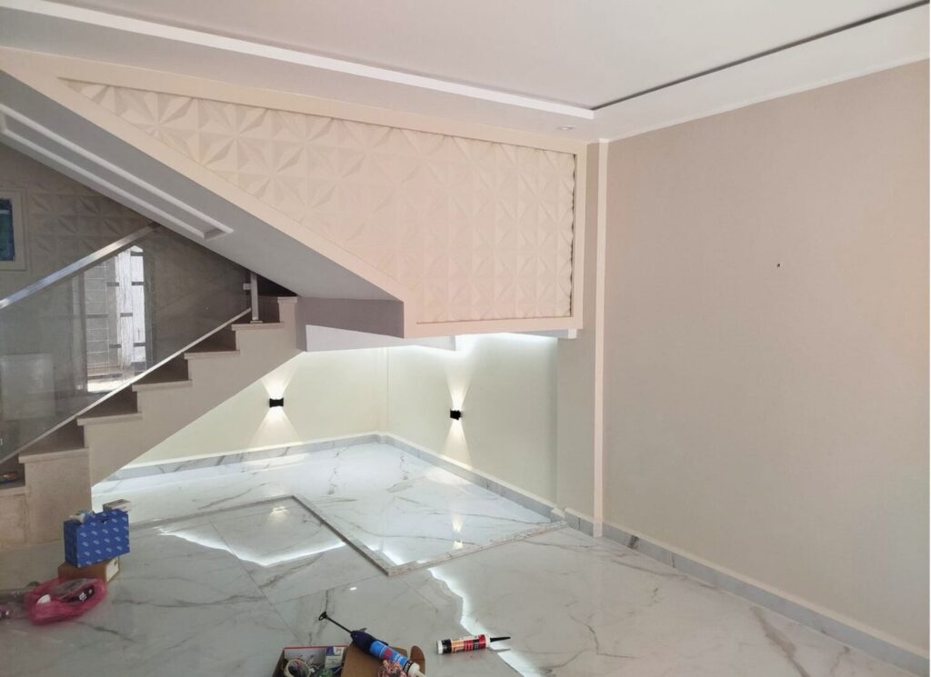 • Finitions de haute qualité : Plafonds en plâtre design avec éclairage LED intégré (spots/indirect)